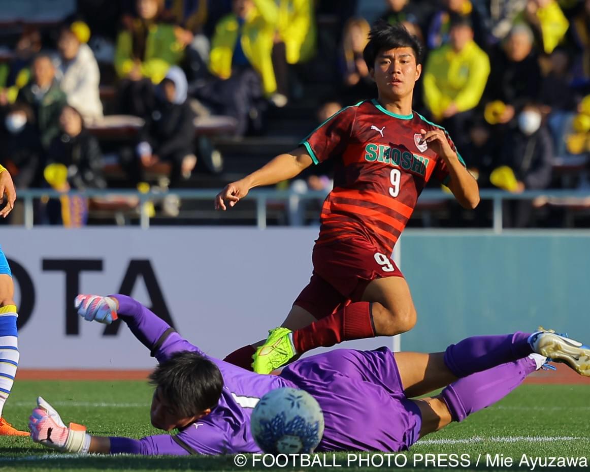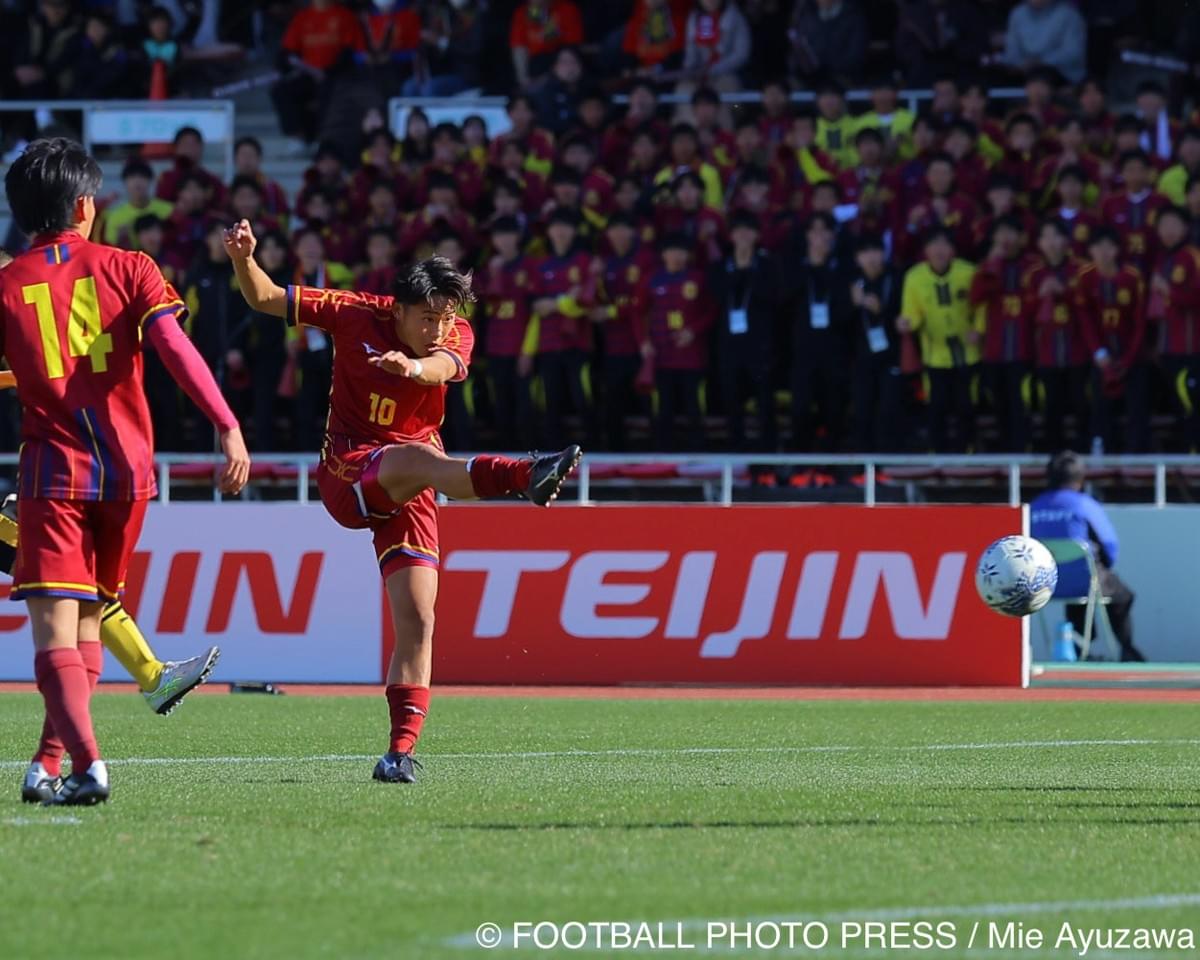 衝撃の開始10分。DF松澤の40m弾に続き、尚志高エース/FW根木翔太が電撃の2ゴール。