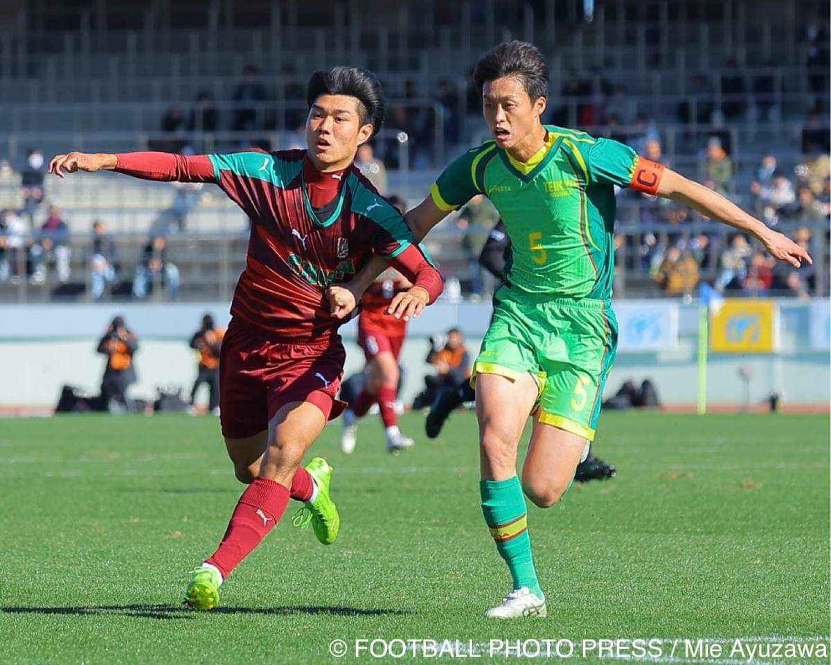 2人のルーツは、兵庫県神戸市を拠点とする名門クラブ、FCフレスカ神戸にある。中学時代、同じユニフォームを着て全国を目指し、共に厳しい練習に励んだ「盟友」だ。卒業後、根木は「技術と勝負強さ」を求めて福島の尚志へ。西馬は「卓越したパスサッカー」に惹かれて新潟の帝京長岡へ。それぞれ異なる道を歩み、3年間研鑽を積んだ結果、高校サッカー最高峰の舞台である選手権準々決勝という大一番で、運命の再会を果たした。