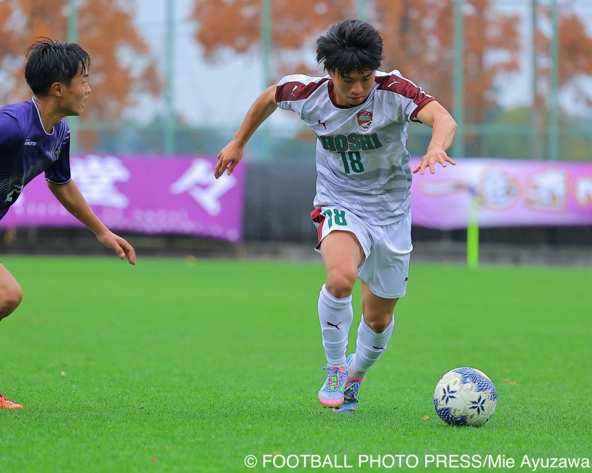 試合中、サイドを主戦場とする根木と、守備の要でありキャプテンとしてチームを鼓舞する西馬は、幾度となく対峙した。互いの特長を知り尽くしているからこそ、一歩も引けない緊迫した駆け引きが続く。後半21分、試合を動かした先制ゴールの起点となったのは根木だった。田上から託されたボールを冷静に運び、右サイドの臼井へと繋げたプレーは、かつてのチームメイトである西馬が守る帝京長岡の堅陣を、一瞬の隙で攻略した瞬間でもあった。